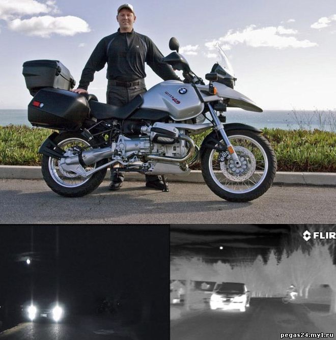 В июне этого года мы строили предположения, что Kawasaki 1400GTR 2010 будет выпущен с технологией ночного видения, которой оборудованы модели высокого класса. Но пока это не произошло, 34-летний Дарен Хейли - который работает в Flir, лидере по технологии тепловых изобретений - подготовил свою систему ночного видения для BMW R1150GS.